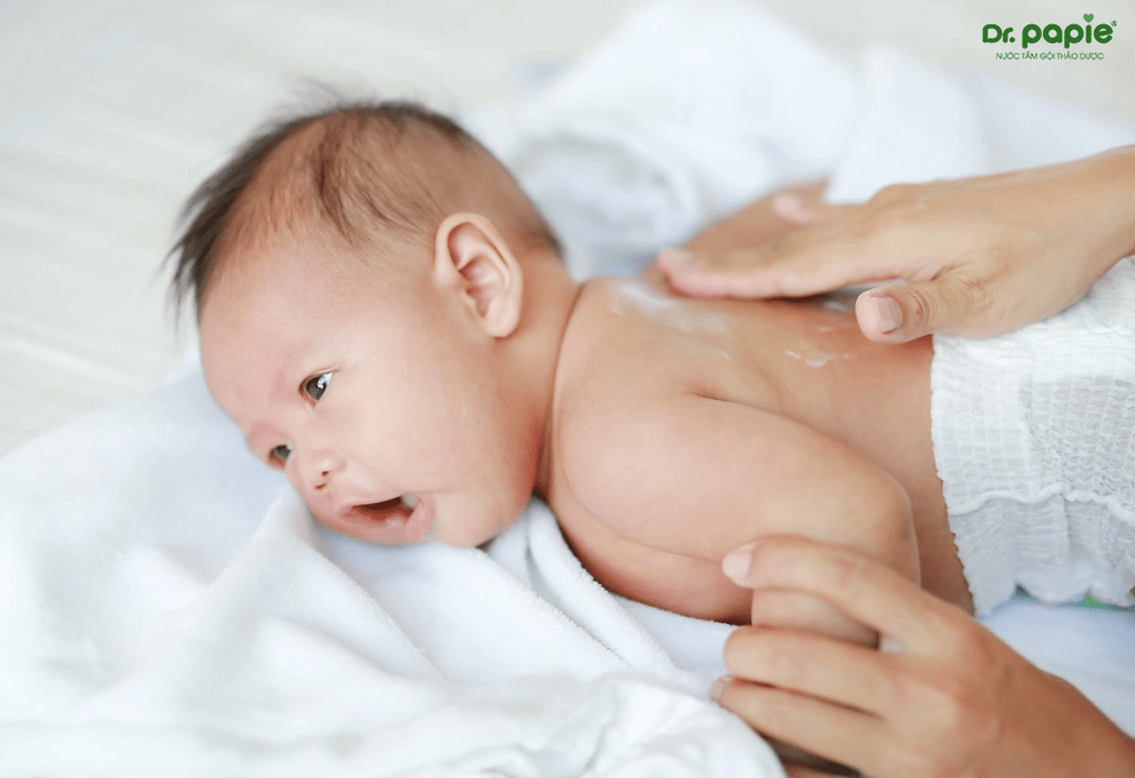 Thời tiết giao mùa da bé khô sần sùi nhà mình luôn tắm drpapie cho bé yêu nc dưỡng ẩm cho da rất tốt